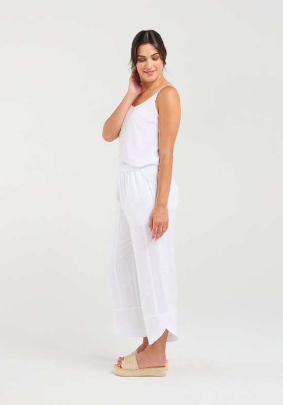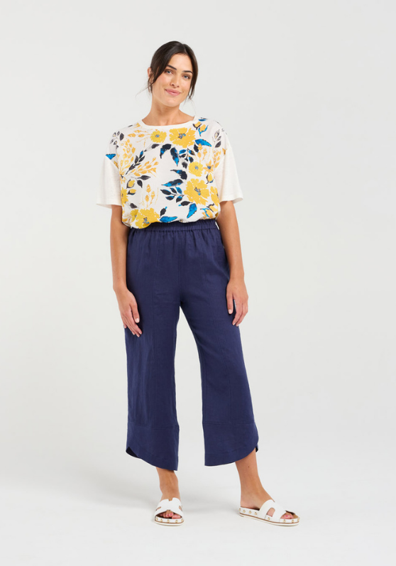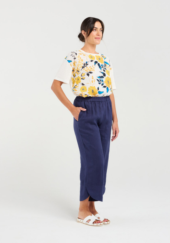 Blackstone's Arabella Petal Hem Pant is a blend of elegance and comfort tailored for the discerning wardrobe. Crafted from 100% linen, these pants promise breathability and durability, making them perfect for both casual work wear and leisurely weekends. The distinct petal hem adds a touch of whimsy and movement, ensuring you stand out with every step. Embrace a blend of sophistication and playful charm with the Arabella Petal Hem Pant. Features: 100% Linen; Elasticated waist; Curved hem detail; In-seam pockets; Cropped length; Front panel seam detail. Renee is 175cm tall and is wearing a size 10.