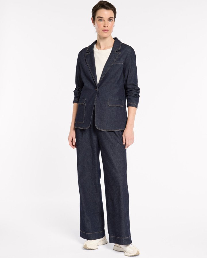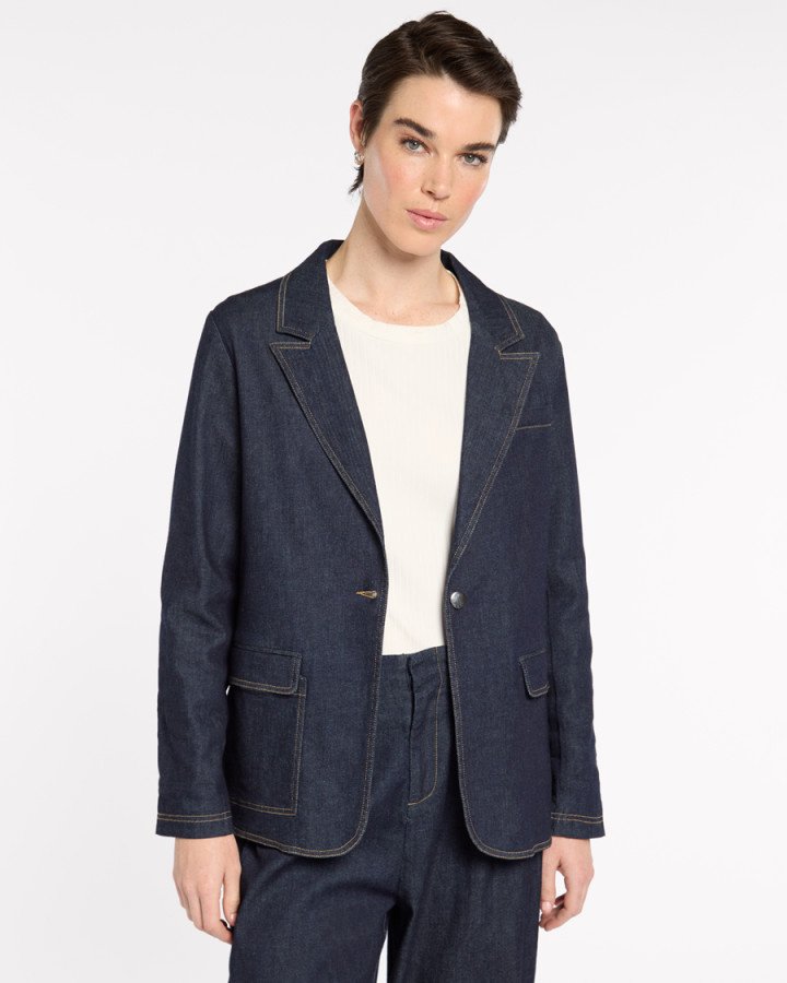 Elevate your wardrobe with the Urban Denim Blazer, a perfect blend of modern sophistication and classic design, in a lightweight stretch denim. The notched collar and lapel is complemented by the contrast stitching giving a sharp, polished look in a relaxed fit. We love it as a matching look styled back with our Urban Denim Pant in the wide or slim leg profile, or you can opt for a more feminine look with the Urban Denim Pleated Skirt.